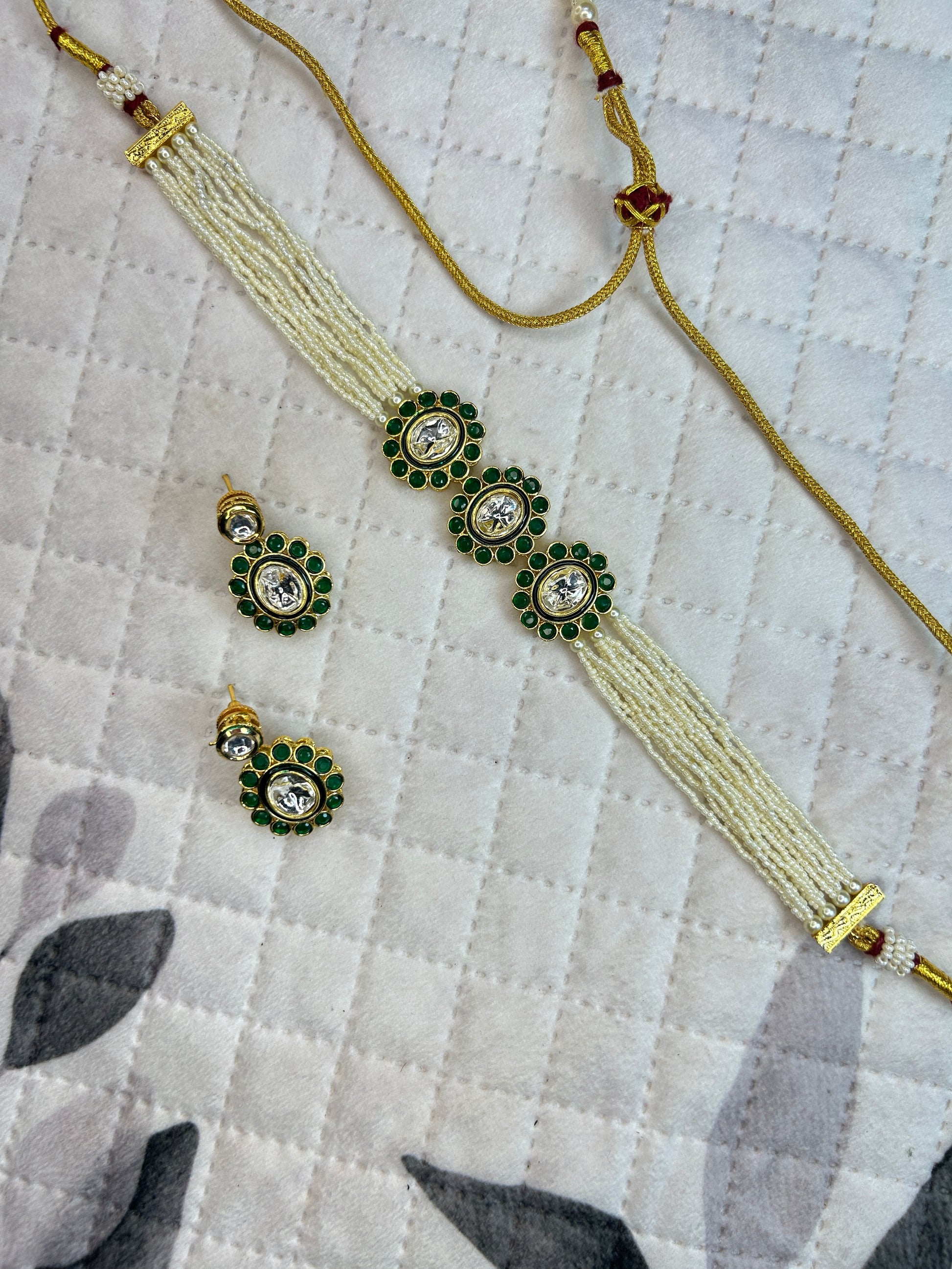 Pearl Strand Emerald Kundan Choker Set